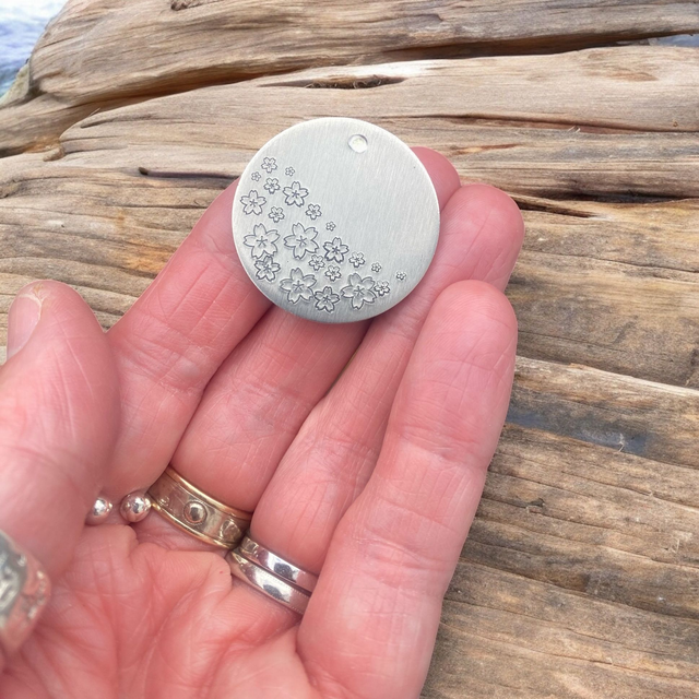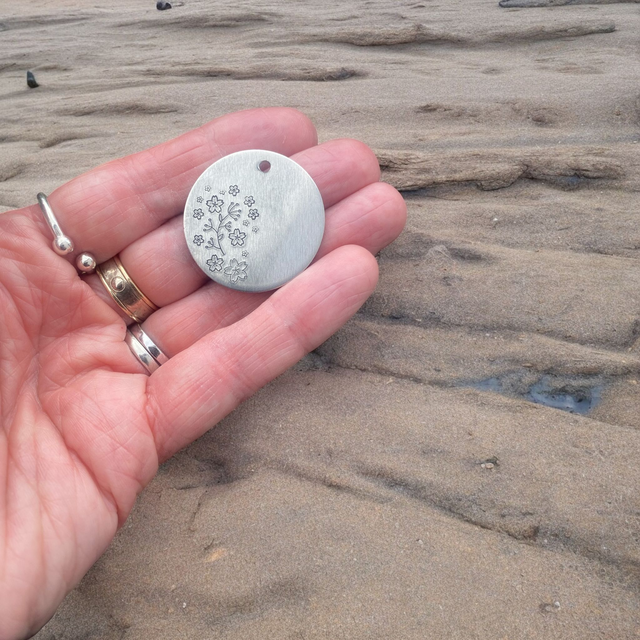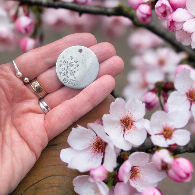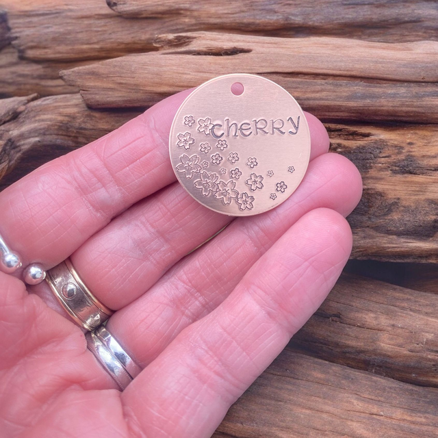 Cherry Blossom themed personalised pet ID tag/keyring